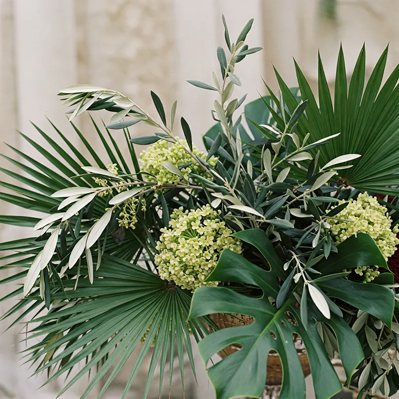 Aunque no son flores, el olivo y la palma tienen un lugar especial. El primero, símbolo de paz y oración, nos recuerda el Huerto de Getsemaní. La segunda, llevada en manos del pueblo en el Domingo de Ramos, celebra la entrada triunfal de Jesús en Jerusalén.